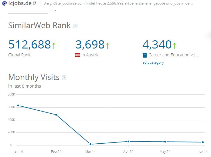 Weshalb hier gerade noch Österreich besonders stark vertreten ist, ist mir ein Rätsel – werde das noch herausfinden. Auffallend ist jedoch, dass auf die .at Domain viel Traffic von jobrapido.at hereinkommt.