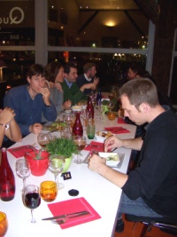 Gekommen waren zwischen 15 und 20 Personen, unter anderem aus Brasilien, Guadeloupe, Kanada, der Türkei, Deutschland und selbstverständlich waren auch ein paar Franzosen dabei. Wir unterhielten uns sowohl auf englisch als auch französisch (und deutsch), und irgendwie hat mich der ganze Abend an meine ERASMUS-Zeit in Lyon vor sechs Jahren erinnert. Nur, dass alle Teilnehmer mitten im Berufsleben stehen und dass wir uns, statt in einer Studentenkneipe, in einem gediegenen Restaurant getroffen haben – die Entrecôte mit St. Marcelin-Sauce, Kartoffelgratin und das Glas Crozès Hermitage waren ürbigens hervorragend!