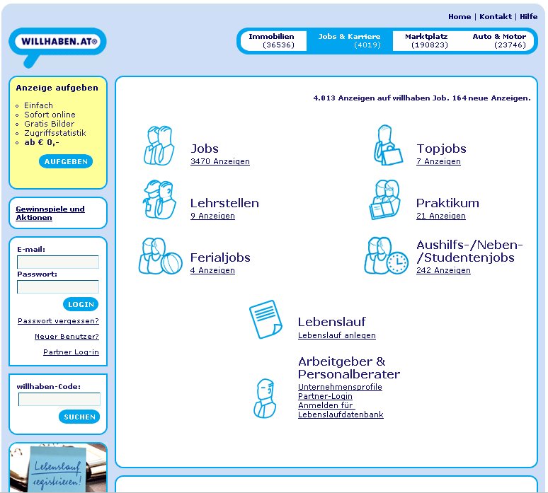 Willhaben.at ist die Lösung des Jobbörsen Rätsels von vor zwei Wochen.