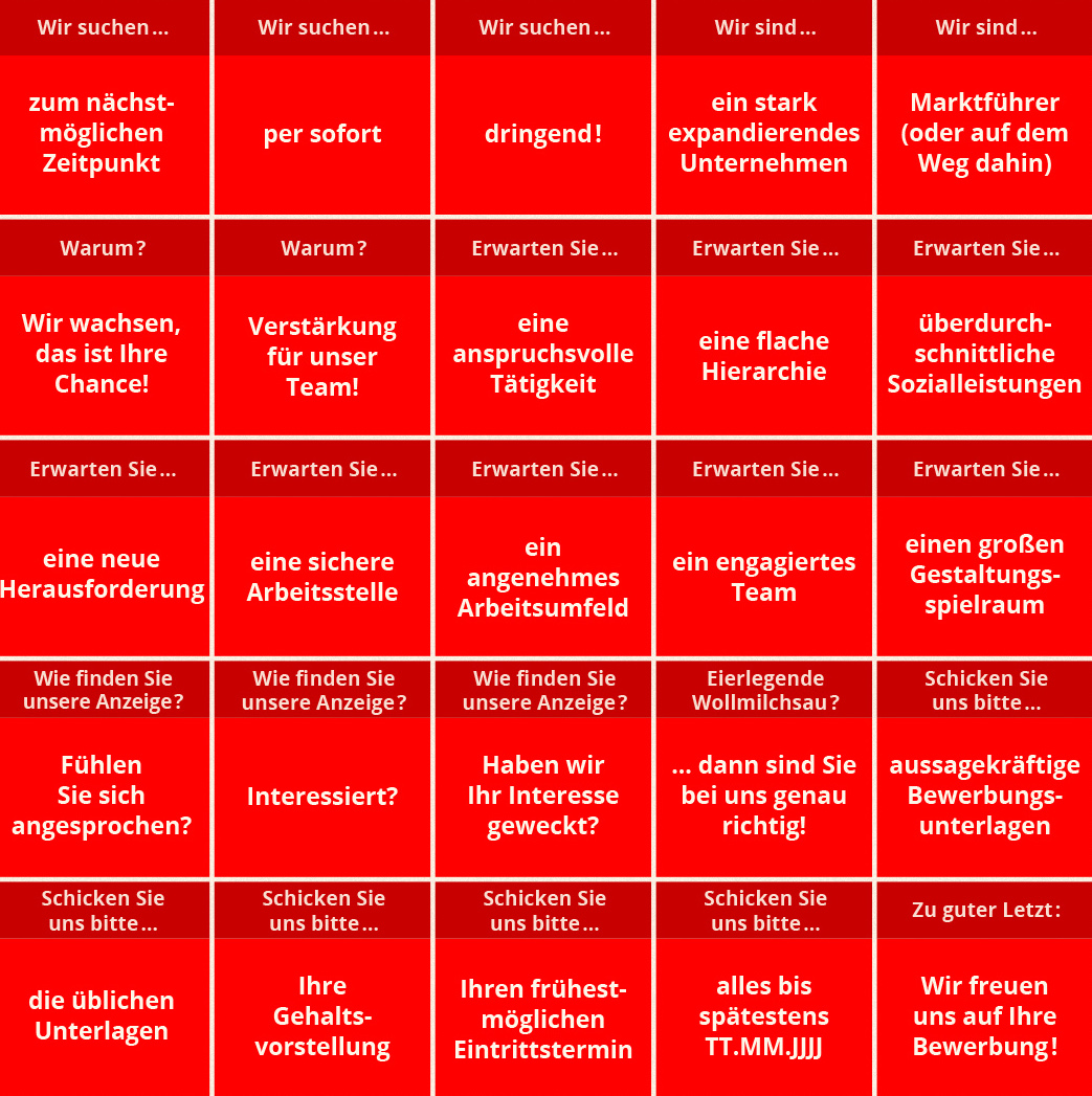 Kennt Ihr übrigens das Stellenanzeigen Bullshit Bingo?
