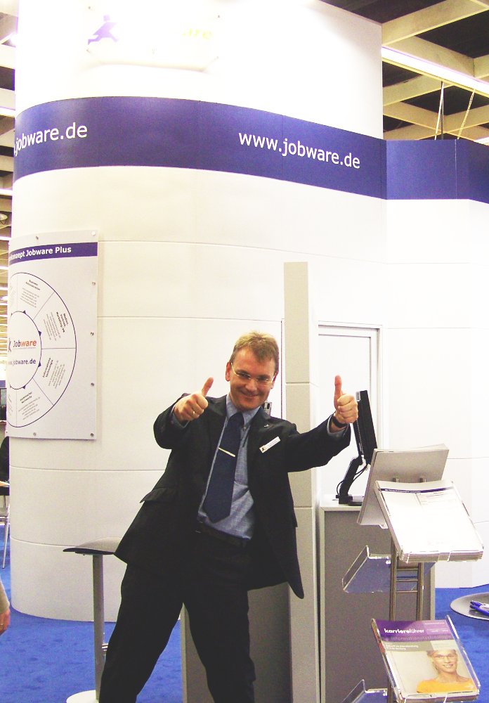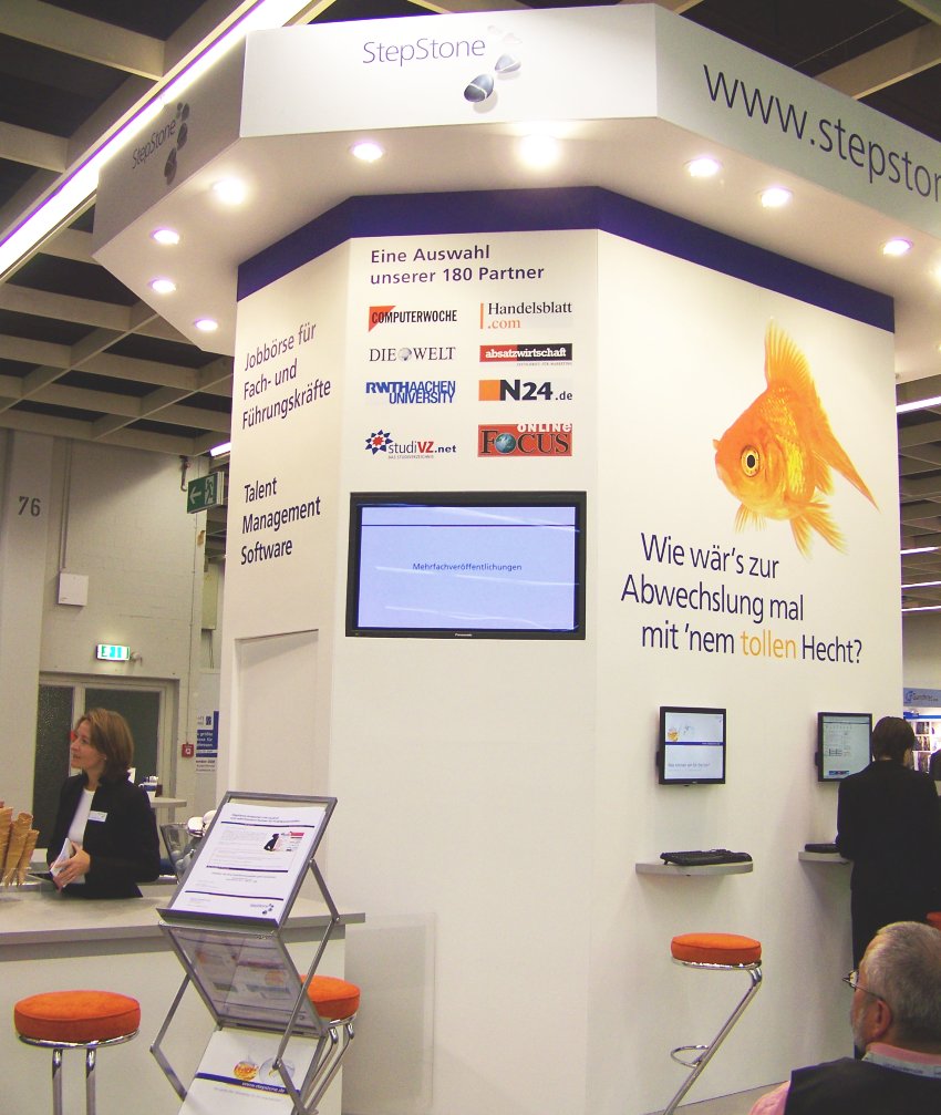 After the Aktor stand photos it’s time to present the 5 most important job sites’ booths. Apparently, the paint of the year was white. Only Monster and Jobscout24.de showed their real, bright and fancy colours.
